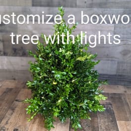 Price: $115.00Custom Holiday Boxwood Tree with Lights
